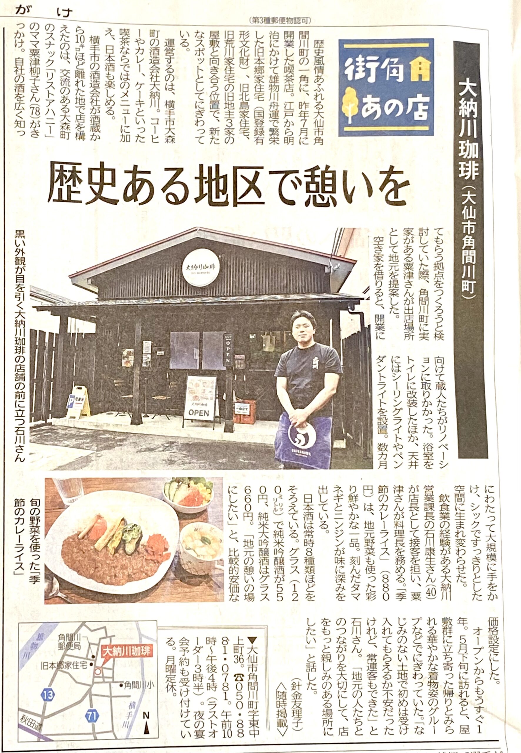 「大納川珈琲」を大きく記事にして頂きました。